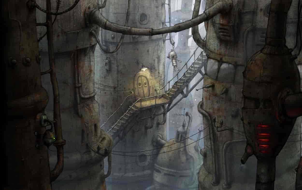 《机械迷城(Machinarium)》中每个角色都是机器人,包括我们的小英雄,他将为了对付坏人并解救自己的女朋友展开了一系列的解谜,没有多余的对白,游戏情节和线索皆靠细腻的动画来表现。细腻的手绘水墨风格打造后现代机械场景画面,让玩家置身在这部充满后现代机械情调的游戏中时,俨然彷佛随着主人公一同冒险,一同前进,一同困惑于种种谜题,一同领略大机器时代的绮丽风光。