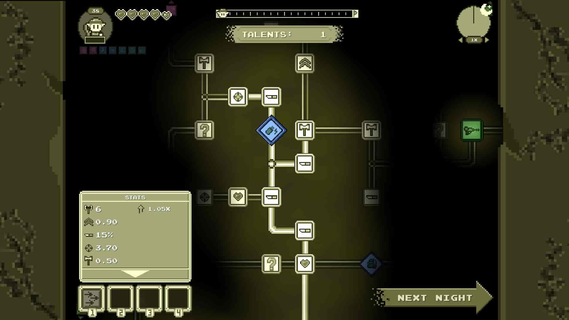 《Talented》 是一款随机生成技能树的街机射击游戏。历经20个夜晚生存下来并通关地下城,即可解锁全部六个职业,每个职业都有可供解锁的天赋、技能和挑战。