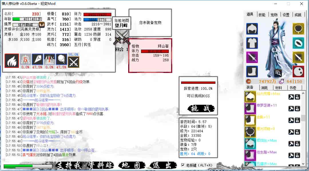 这是一款很”休闲”的文字挂机游戏,游戏小而系统完善,玩法丰富,极其耗电,并且有大量玩家自制mod,让你玩了就停不下来。喜欢文字挂机游戏的不要错过,也仅限喜欢挂机游戏的同好,