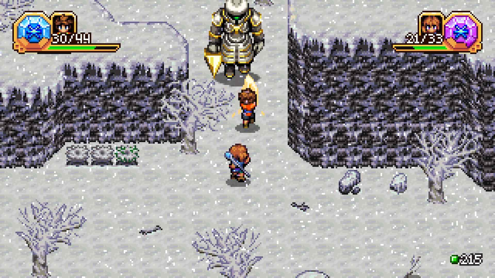 这是一款受超级任天堂经典启发的动作 RPG。你将探索广阔多彩的魔法世界,以实时战斗与装备养成系统迎战强敌。冒险中,你将组成一支双人英雄小队:同伴既可以由 AI 协助,也可以在双人模式中由朋友一同操控。
