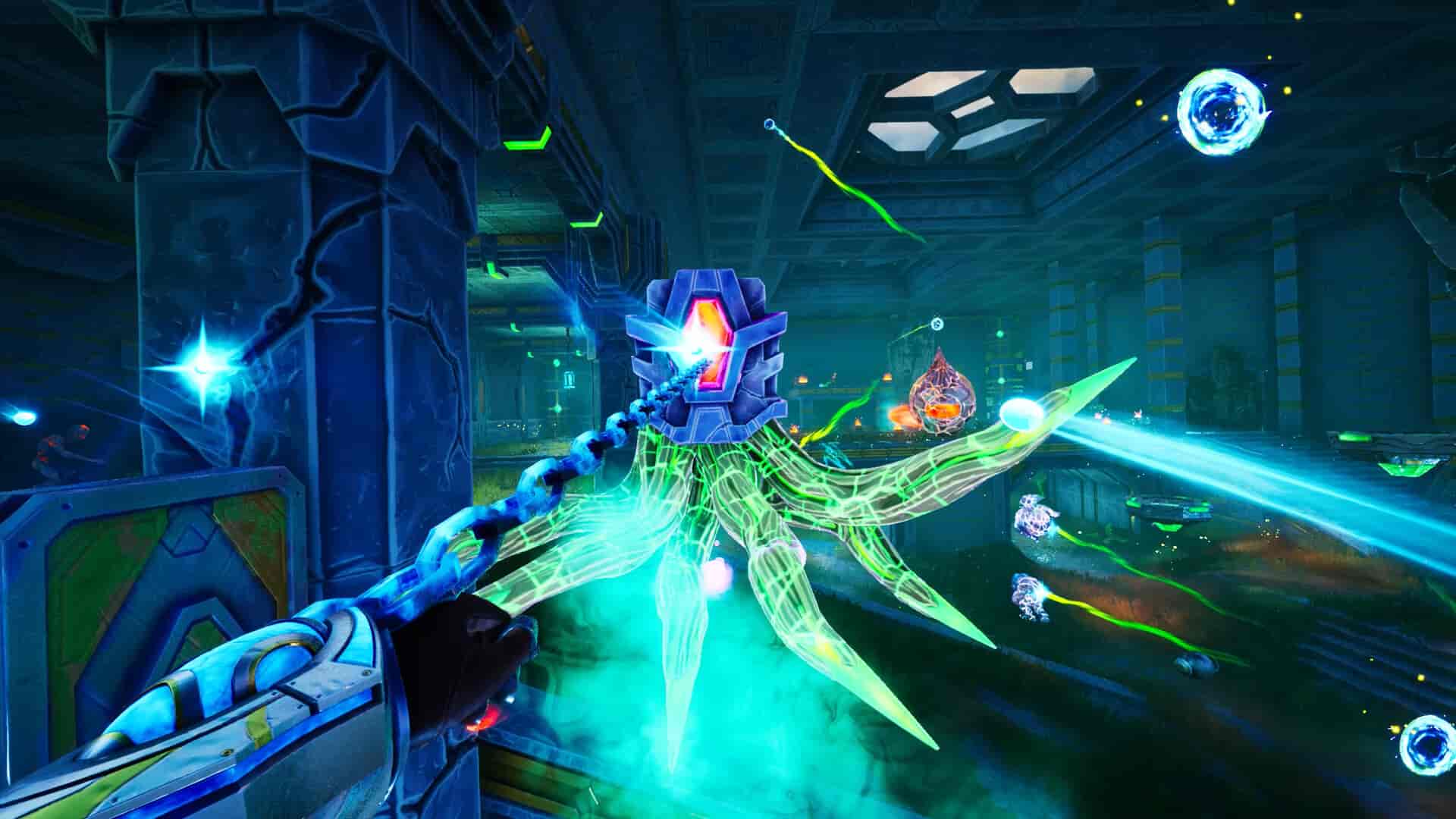 使用你的链钩更快地移动,对低血量敌人执行终结技,并在每次探索中找到拥有独特技能的强力武器。