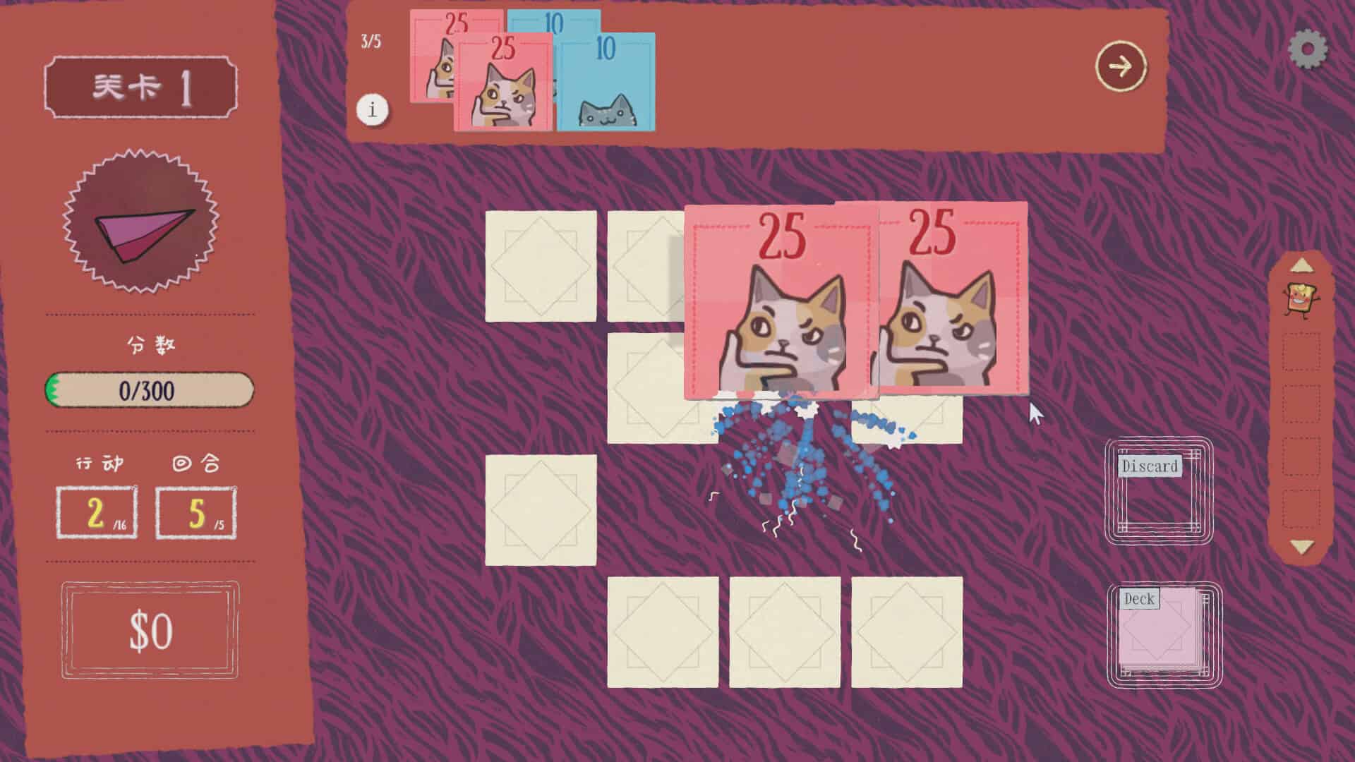 《双喵成行》是一款以猫meme为主题的小品级Roguelike翻翻乐卡牌游戏。 你将和一群性格各异的猫咪一起,通过各种天马行空的组合、奇怪又好用的道具,打破传统的卡牌配对规则,开启一场充满惊喜和笑点的卡牌冒险!